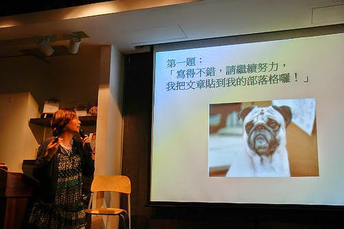然後是披頭散髮的本人我上場啦...生平第一次製作ppt檔,還煞費苦心加了音樂,音樂卻沒出現哪XD所幸大家仍然挺捧場的給了我多笑聲(^^)我大抵是講些自己寫部落格的二三事,沒什麼學問的內容......承蒙大家不嫌棄!(鞠躬)